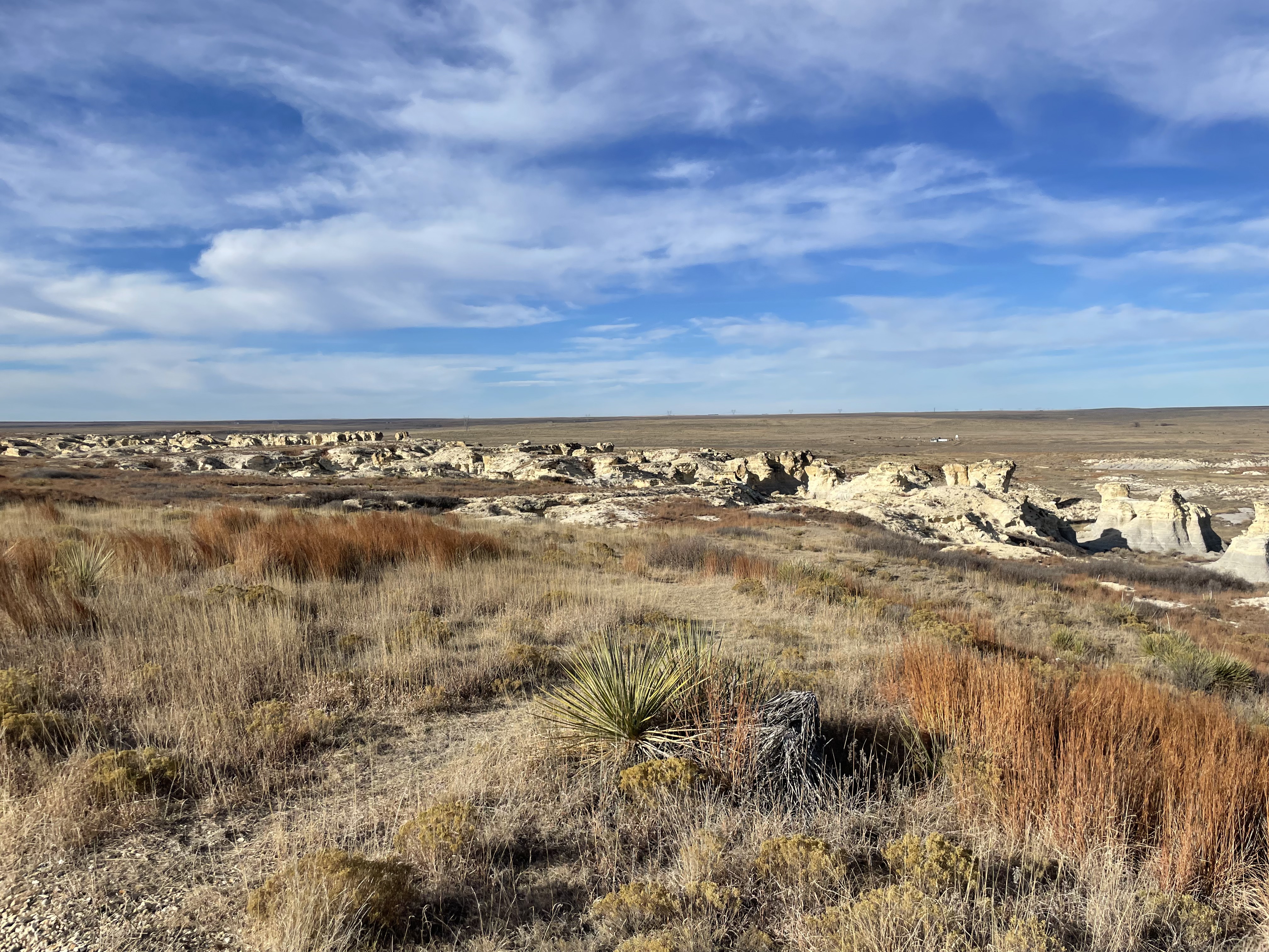 So happy to be over our quarantine we took a quick weekend trip out west. We have been wanting to see the state park called Little Jerusalem Bad Lands, it was four and a half hours so we decided to break up the trip and stay overnight in Hays, KS. There was a Natural History museum there that we could get into with our Exploration Place membership. We dropped Harpo off at the boarding resort Friday morning (day after Thanksgiving after I subbed a 8:30am cycle class) then headed out west. We stopped for lunch in Salina, Kansas (an hour and a half away) enjoyed some good barbecue. As you can imagine the scenery the whole drive, lol. Yup FLAT FLAT FLAT!